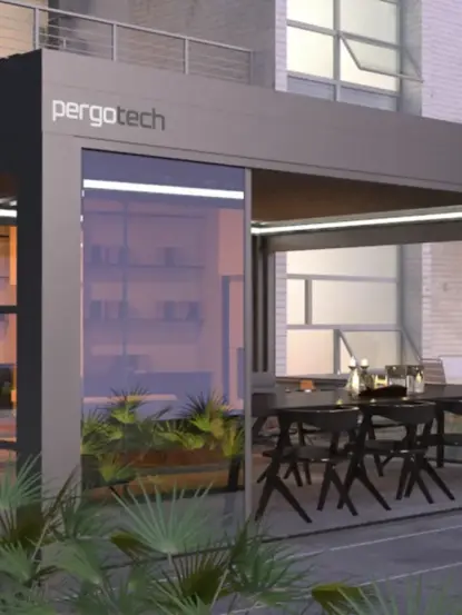 PERGOTECH sistemleri alüminyum strüktürden oluşur. Full inox vida ve bağlantı parçaları kullanılır. Kullanılan blackout kumaş alev yürütmeme özelliğine sahiptir. Kolay temizlenir.